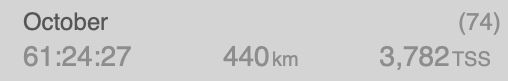 練習内容的にはランを重視してるのでL2やL3で回すことが多かった。それでも10月の頭には20分のFTP走で245W、水曜チーム練のアルプでもセカンドベストが出たりして、練習量や内容には比例せず調子は良かった。ひょっとしたら夏場の疲れが抜けてきたのかもしれません。