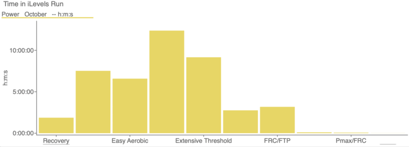先月までのヒストグラムと比べると中強度域のボリュームが増えてきました。実際中強度走やLT走をやり始めたので、そこの厚みは増したように思う。来月も中強度域を引き続き刺激しながら、VO2maxへの刺激ももう少し入れていきたい。