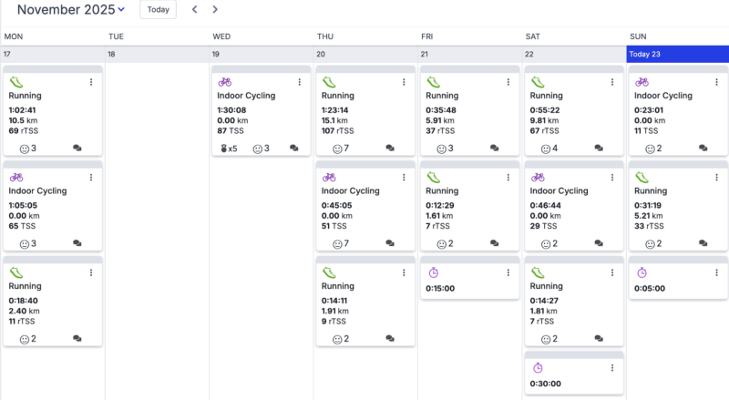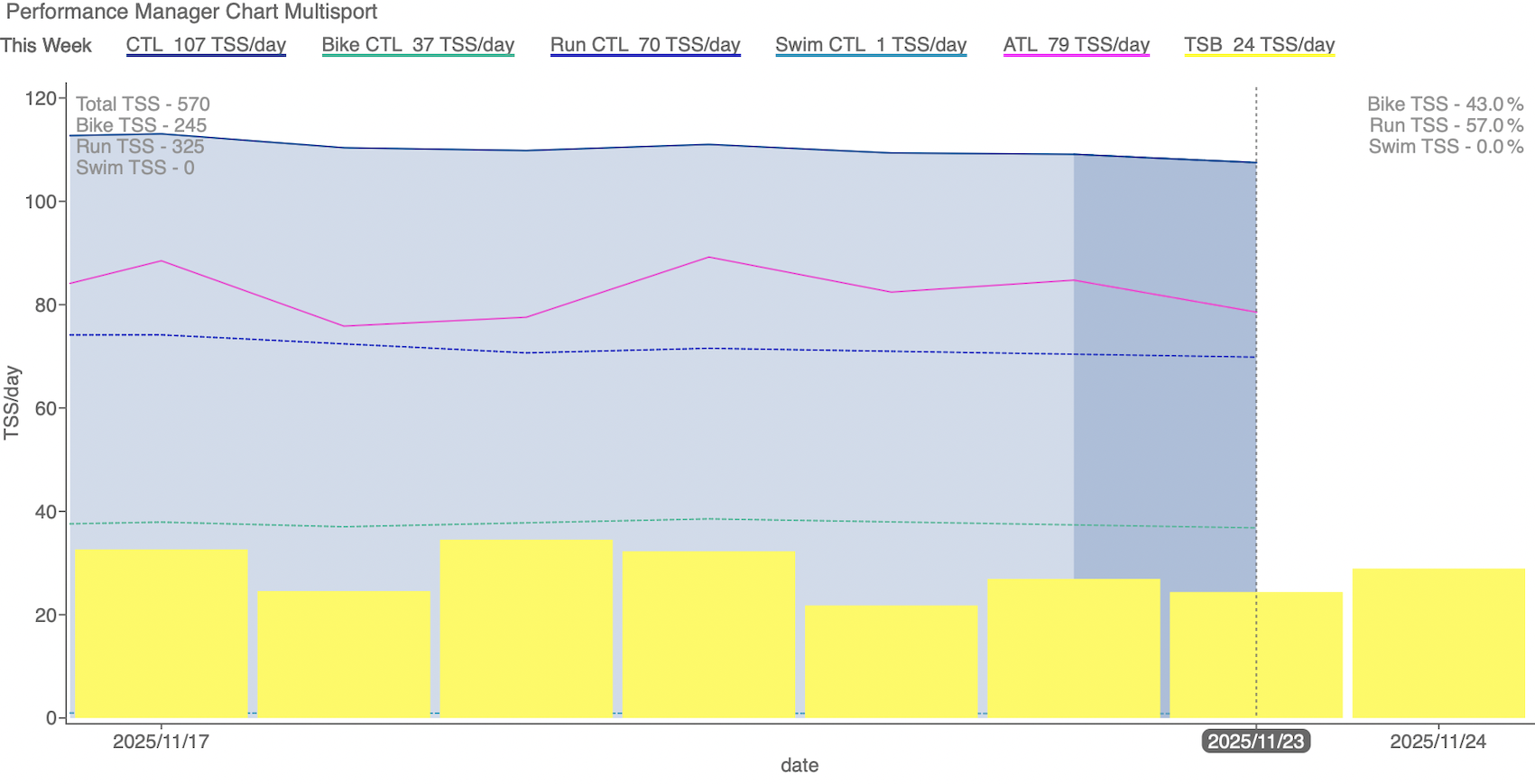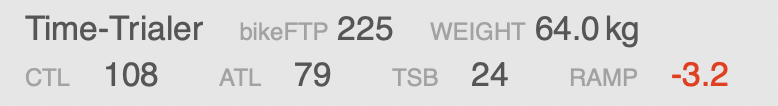 3週連続で冴えない練習結果なのでCTLも3週連続で落ちました。まぁ多分ここが底。閑散期になれば上がっていくだけだし、まだシーズンまで半年もあるので全く悲観することではありません。