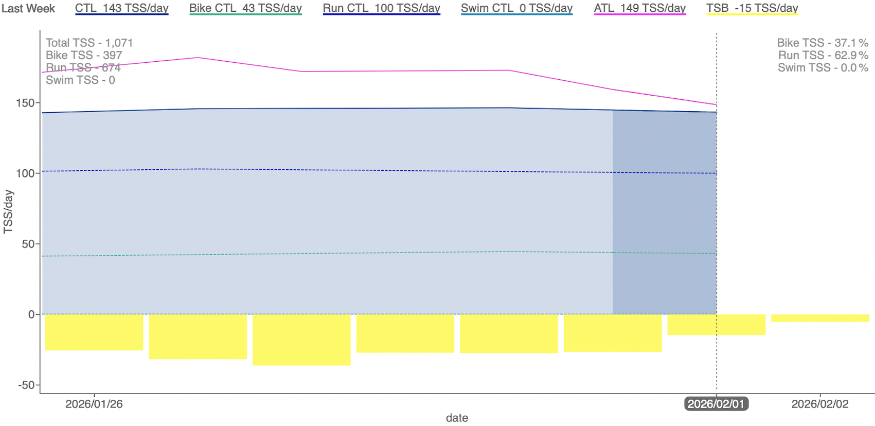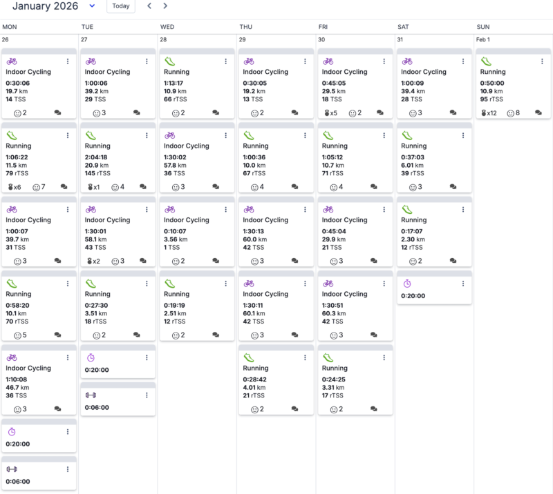 今週も寒かったし風が強い日も多かったけどまずまず積み上げられたと思う。ランのCTLが過去最高値をさらに更新して103まで上がった。月間600km走ったのも過去最高。1月はよく頑張ったと思う。