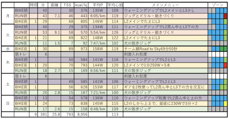 全然走ってなかったので着地衝撃耐性がかなり落ちました。10kmすらまともに走れない感じ。まぁ落ちてしまったものはしょうがないので、練習ボリュームはバイクで賄いつつ、ランを戻していかなきゃですね。