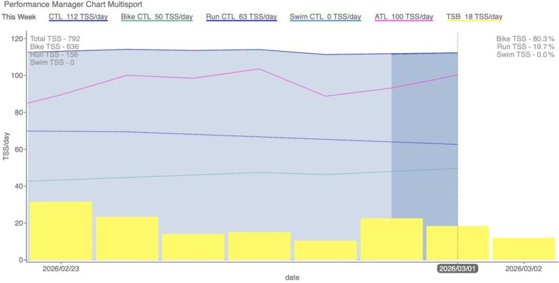 CTLはやっと下げ止まりました。146から112まで34ptも落ちたので、こりゃ戻すのが大変だぁ。週間700TSS程度の練習は出来るようになってきたので、来週は1000TSSくらい積めればいいな・・・。