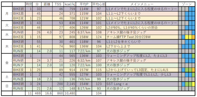 書いた通りにはなりませんでした。もう少し練習できるかと思ったけど、しろさとTTからの激務、そしてSTU記録会で疲労の上塗りと思いのほか疲労が溜まってたし、FTPテストや週末の練習会に向けて抜いたりもしてたので、練習を積み上げることは出来ませんでした。