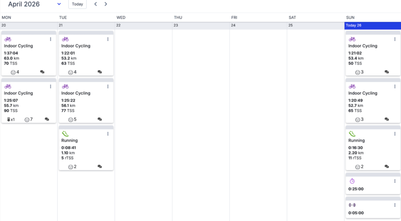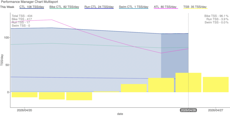 仕事や私生活で疲れず神経疲労もなければ、150TSSくらいの練習を継続しても疲れないんだよな。やっぱり仕事で神経と脳ミソを使うと心疲労とか、そういった部分の疲れが後々まで濃く残る感じ。